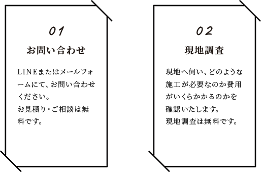 当方は自社施工のためマージン(中間手数料)がかからないだけでなく、現地調査・お見積りも無料でご提供しております。